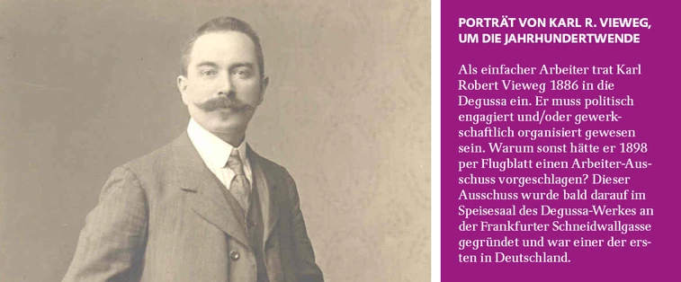 Auch die Evonik-Vorgängerunternehmen Degussa, Frankfurt (gegründet 1873), Th. Goldschmidt, Essen (gegründet 1847) sowie Röhm & Haas, Darmstadt, (gegründet 1907) reagierten auf diese Herausforderungen – mit unterschiedlichem Tempo. Die Degussa trat schon vor den staatlichen Zugeständnissen mit arbeitnehmerfreundlichen Regelungen hervor. Sei es 1875 mit einer Versicherung gegen Krankheit und dauerhafte Arbeitsunfähigkeit oder 1886 mit einem „Pensionsreservefonds“, der Arbeiter, Angestellte und Hinterbliebene absicherte.