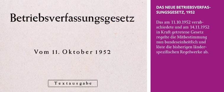 Das Betriebsverfassungsgesetz von 1952 löste die bisherigen länderrechtlichen Regelungen ab und führte zu einer bundesweit einheitlich kodifizierten Mitbestimmung.